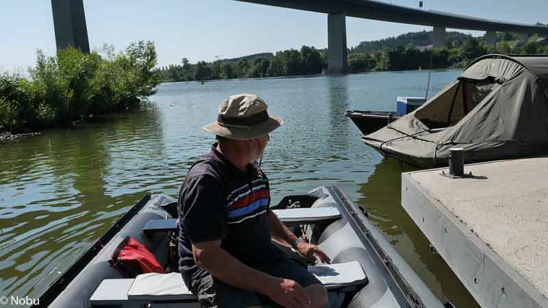 Nachdem ich mich inzwischen vorgestellt habe möchte ich von unserer Jungfernfahrt im vergangenen Sommer berichten. Im Juni habe ich zusammen mit meinem Junior die erste Fahrt mit unserem neuen Bombard Typhoon 420 geschafft. Dabei sind ein auch paar Bilder entstanden. Eigentlich hätte es Kroatien werden sollen, wo wir uns gut auskennen, es war aber terminlich leider nicht drin, so wurde es die Donau, Passau stromaufwärts. Dabei sind wir absolut auf den Geschmack gekommen wie schön doch Flussfahren sein kann und wollen es wiederholen. Wir hatten uns vorher bei den Wassersportfreunden Passau erkundigt und konnten dort in Schalding unser Boot aufbauen und das Auto abstellen. Danke für die freundliche Hilfe. Donau-Bootfahren ist wunderschön, aber für uns an diesem Donau-Abschnitt Neuland. So gab es auch einige "Aha-Erlebnisse". Dieser Teil der hier freifließenden Donau hatte für uns unerfahrene Donau-Skipper einige Neuerkenntnisse parat. Wir hatten uns vorher zwar informiert, z.B. hat man uns geraten auch mit einem kleinen Boot unbedingt auf die Betonnung zu achten. Gewöhnungsbedürftig waren auf jeden Fall Stellen mit über 8km/h Fließgeschwindigkeit. Das ist normalerweise kein Problem, das Boot schafft locker über 30 km/h. Aber 8km/h sind bei uns etwa die Rumpfgeschwindigkeit, darüber beginnt der Übergang zur Gleitfahrt. Das hat uns beim Anlegen (normalerweise ja in Verdrängerfahrt) in der Mühlhamer Schleife zum schönen Mühlhamer Keller etliche Schweißtropfen gekostet. Wir haben es dann aber doch geschafft und konnten in der Mündung des Haardorfer Mühlbaches, neben den Zillen liegend, anlegen. Außer einer gottseidank harmlosen Grundberührung dabei ist nichts passiert. Grüße aus dem Inntal __________________ Norbert fertig aufgebaut, Junior: Was haben wir vergessen? Anhang 26831 reger Betrieb an der Rampe in Schalding Anhang 26832 Slipräder weg und los... Anhang 26833 Anhang 26834 Die Sandbacher Fähre Anhang 26835 Anhang 26836 Hunger und Durst wurden übermächtig Anhang 26837 und wir versuchten es... Anhang 26838 mit Anlauf gegen den Strom Anhang 26839 kurz vor Ende der Reise gab´s dann noch ein Eis im Fischerstüberl, da war bedeutend leichter anzulegen... Anhang 26840 |