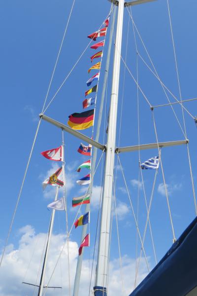 Wir haben 40 Jahre Segelei hinter uns - in Griechenland war es ein Abschied **weinen**vom Wassersport mit allen Flaggen der von uns auf eigenem Kiel besuchten Länder (16 an der Zahl, davon 6 auf der Donau) unter der Saling… Die Flaggen sind uns geblieben…:) Anhang 32569 Anhang 32570 |