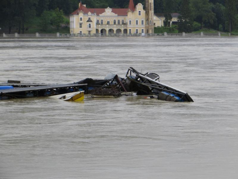Der Pegel liegt nur noch ca 1 m unter dem historischen Wert von 2002. Hier im Schatzkastl steht das Wasser schon ca 1,5 m hoch im Keller. Der Hotelbetrieb ist eingestellt, wir dürfen aber vorerst bleiben.... ![]() Die Schwimmstege zeigen noch keine Schwächen und 1 - 2 m würde ich ihnen auch noch zutrauen. Wir gehen jetzt mal ein paar Fotos machen.....