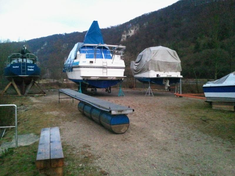 ![]() Der Motor ist noch schön eingepackt. Die Plane über dem Boot ist auch noch fest.