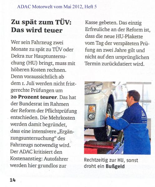 Aber Spaß beiseite: Ab 01. Juli 2012 wird eine ab 2 Monate "Verspätete" HU für den Halter teuer: 20,- € erhöhte Gebühr für die HU. Das einzig positive: diese HU gilt ab dem Tag der Abnahme und wird nicht zurück Datiert. Das gilt für ALLE Fahrzeuge, die HU-Pflichtig sind. Auch Bootstrailer!
