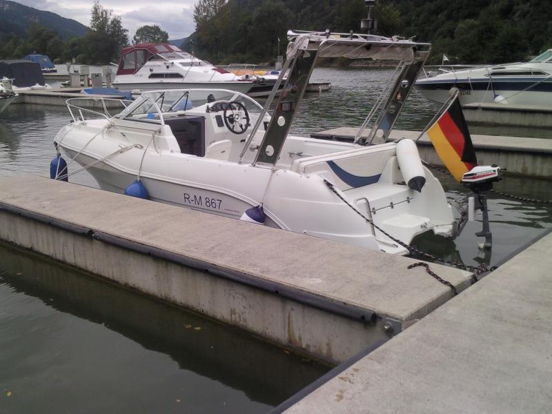Gestänge vorne 1 Bügel, fest abgestützt, hinten 3 (also genau umgekehrt wie sonst bei den Verdecken, ist nötig, damit man nach vorne aussteigen kann) Bimini hat eine Riesengröße von über 2,50m, da das Oberteil bei so einem Verdeck auch nicht getrennt werden kann. Verdeckhinterteil ist hochrollbar als auch komplett wegnehmbar. Wäre der saublöde Geräteträger nicht gewesen, hätten wir ein nahezu perfektes Verdeck machen können ![]() Aber auch so könnte man es direkt auf ne Messe stellen (inkl. Fuchsschwanz) ![]() ![]() ![]() ![]() ![]() ![]() ![]() ![]() ![]()