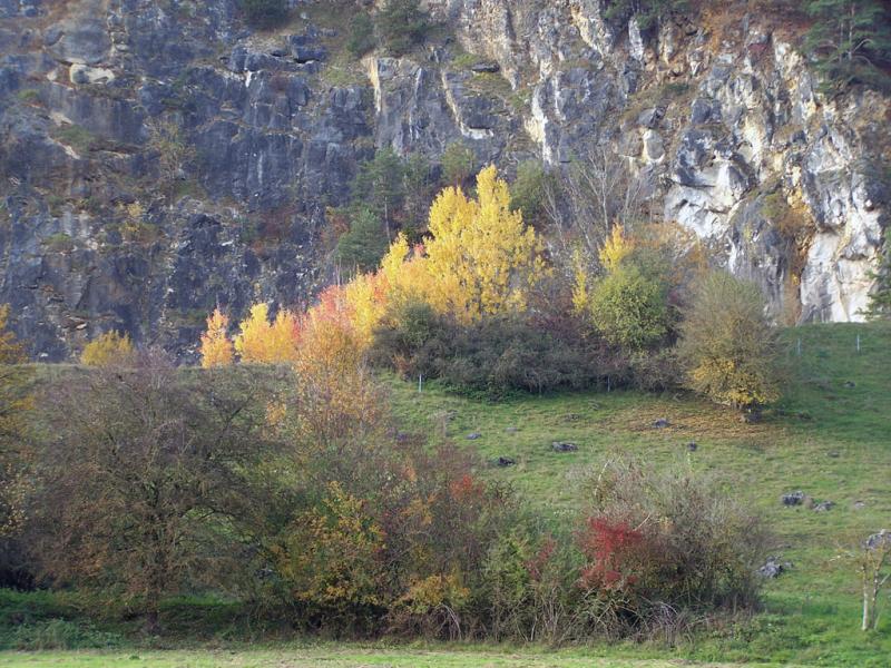 Also heute war ich mal (wieder) unterwegs. Bei schönstem Herbst-Novemberwetter ging es über Eichstätt hinaus in Richtung Dollnstein und dann links ab nach Rennertshofen. Das ist das "Wellheimer Trockental", durch das sich die Donau so vor 147.000.000 Jahren gequält hat. Heute gibt es da nicht mehr viel Wasser, einzig die Schutter müht sich noch bis nach Ingolstadt.
