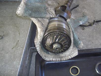 Gut sichtbar ist jetzt auch das ganze Getriebeöl im Balg,