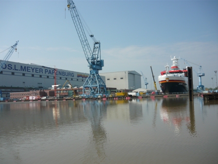 Hier ein paar Bilder von der Unterweser von verschiedenen Werften mit Schiffneubauten.