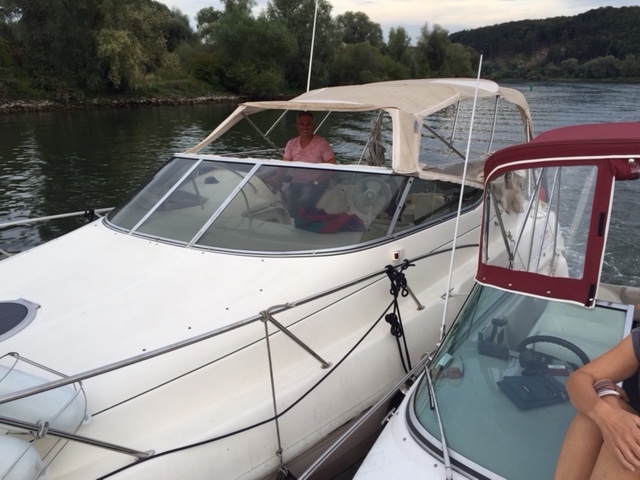 Dann, nach einem schönen Tag auf dem Boot zwischen Saal und Regensburg hat mich leider mein Motor ca 2km vor Saal im Stich gelassen. Ist bei voller Gleitfahrt ausgegangen und ich durfte dann, natürlich in der Fahrlinie, bzw. am Rand davon, notankern.