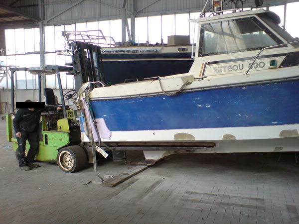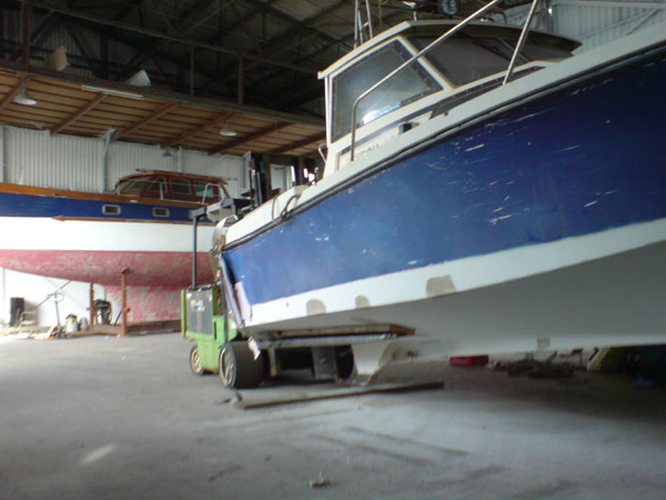 Aber wir hatten gerade keinen Lagerbock frei und das Boot mußte in ne andere Halle...