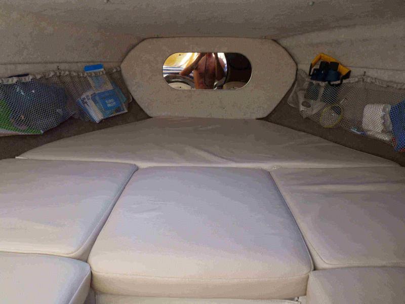 Leider hat der Teppich im Innenraum in den Jahren etwas gelitten(Bild) und wir hatten links und rechts der Bugklampe einen Handflächen großen Gelcoatschaden der von einer Fachwerkstatt in München repariert wurde. Ist fast nicht mehr zu sehen.