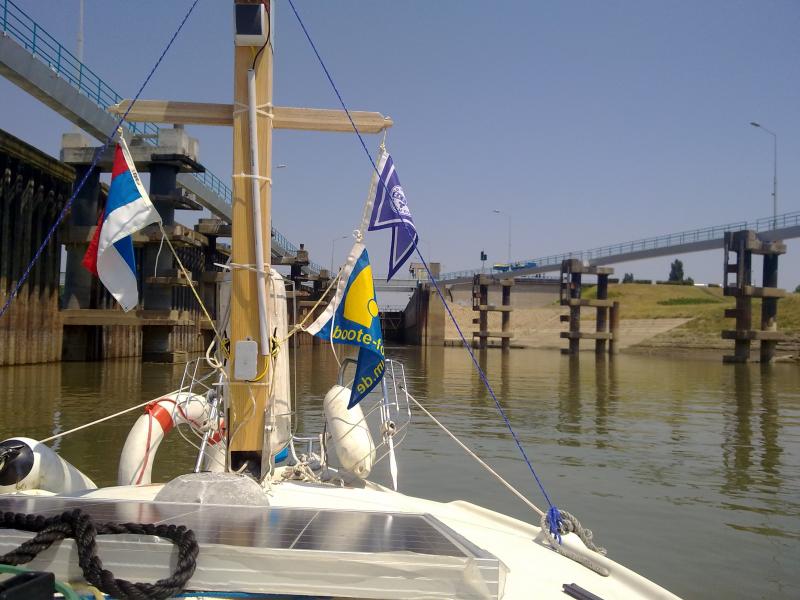 bin jetzt bei km 66 in Novi Becej. ![]() Hab gestern vergessen zu erwähnen daß mein Motor nach der Grundberührung auch nicht mehr ging. Er sprang an, aber sobald ich einen Gang einlegte war er wieder aus. ![]() Es war ein dicker Tampen im Propeller und als ich den entfernte war alles gut. ![]() Die Tisa kann ich nur empfehlen. Alles sehr entspannt hier. Gestern bin ich bis km 36 gefahren und habe an einem Restaurantponton festgemacht. Ich fragte ob ich in Novi Becaj wäre und bekam positive Antwort. Dann hab ich lecker Fisch gegessen und ein paar Bier getrunken. Als ich zahlen wollte bekam ich eine Abfuhr wie schon die zwei Tage vorher. Die lassen mich hier einfach nicht bezahlen und ich bin überall Gast des Hauses. Auch hier in der Marina handhaben sie das so. Alle deuten nur auf mein Boot und erklären, sie fänden meine Tour so gut ... Auch jeder zweite Bootsführer dem ich begegne streckt den Daumen nach oben wenn er die Flagge sieht und ruft mir ein Dobro zu. Gestern abend war noch ein dickes Gewitter. Die leere große Kaffeetasse die im Cockpit stand war danach randvoll. Habe bisher etwas über 200 Liter getankt und noch mehr als 90 Liter davon in den Tanks. ![]() Bei km 63 gibt es eine Schleuse. Sofort eingefahren und geschleust worden. Danach wurde ich nach meiner Lizenz für die Tisa gefragt. Ich zeigte meine Papier vom Kapitano in Bezdan und er meinte das wäre nicht genug, ich hätte mir in Novi Sad eine Lizenz besorgen müssen. Ich sagte ihm, daß der Kapitano in Novi Sad meinte Tisa wäre für mich kein Problem. Er telefonierte kurz und meinte alles kein Problem. Er darf mir die Lizenz ausstellen. Kostete mich dann knapp 10 € und habe jetzt alle Papier, so Gott, Äh Behördenfuzis wollen. Das letzte Bild ist die Marina in der ich gerade liege. Me3in Kühlakkus liegen im Eisfach und es hat Toiletten. ![]()