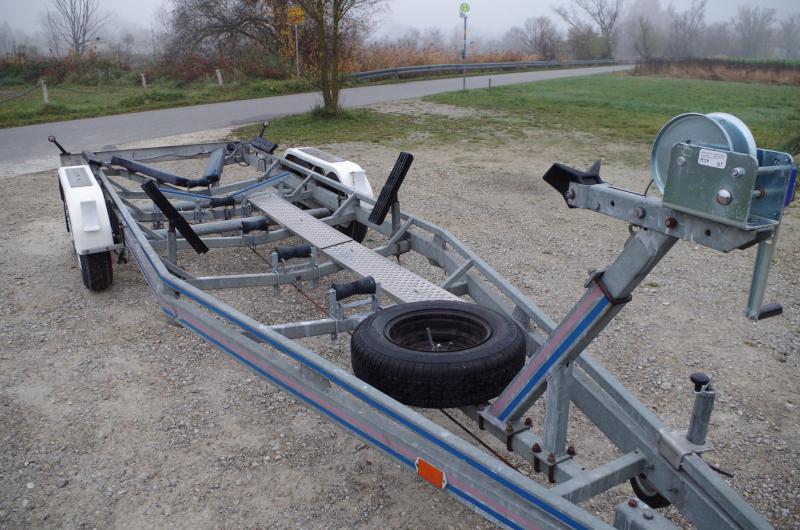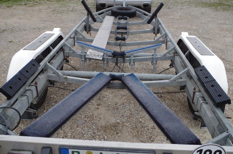 ich biete hier meinen Trailer 2,0t zum Verkauf an. Der Trailer könnte sofort abgeholt werden, da ich mir einen größeren gekauft habe. Daten: Hersteller: Fabian & Öchsner Typ: FT20 Erstzulassung 05/1994 zulässige Gesamtmasse: 2000kg Länge: 6,75m-7,75m (lt. Schein) Breite: 2,14m (lt. Schein) Achsen von Firma Knott TÜV wurde im März 2016 gerade neu gemacht. Zu den kleinen "Macken": Den Faltenbalg haben Gänse angeknabbert Besonderheiten: 100kmh Zulassung Stoßdämpfer Die Traversen haben eine V-Form damit der Schwerpunkt tiefer liegt. Tiefes V am Heck - er müsste somit auch für ein Boot mit Wellenantrieb geeignet sein, das habe ich aber nicht getestet. Zentrierhilfen: Über das V am Heck habe ich mit eigens dafür in einer Metallverarbeitung hergestellten, extrem stabilen Z-Winkeln Sliphilfen gebaut. Auf die zweite Traverse habe ich noch eine weitere Sliphilfe gebaut. Das Slippen war damit sehr einfach - drauffahren und gut. Zusätzlich habe ich noch einen Laufsteg aus stabilen Auffahrrampen gebaut. Ersatzrad (älter) mit Halterung Nicht auf den Bildern: Für das Heck habe ich noch 2 Rollen gebaut. Diese werden beim Slippen anstelle der Lichtleiste in den Rahmen gesteckt, so kann das Boot auch dort nicht gegen den Rahmen angehen. Neu kam in 2013 auch noch eine Winde von Knott (K950A). VHB: 2.000 € inkl. aller abgebildeter Sliphilfen Der Trailer steht bei Regensburg / Bayern. Viele Grüße Markus