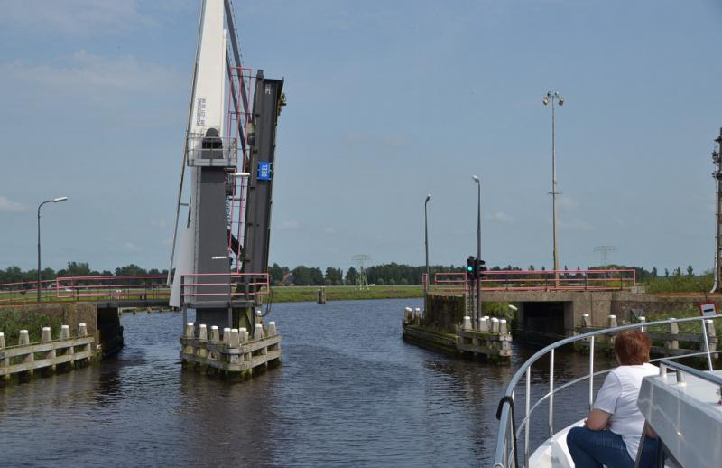 Man fährt mehrere Kilometer durch den Schifffahrtskanal nach Norden, immer an der Bahn entlang und es kommt ca. alle 10 Minuten ein Zug jeweils in die eine und in die andere Richtung. Endlich kommt dann eine Zugbrücke, die man per Knopfdruck anfordert. Sobald der Fahrplan es zulässt, gehen die Bahnsignale auf Rot, die Brücke wird hochgezogen und sobald du grün bekommst, kannst du passieren, in den genau parallel laufenden anderen Kanal: