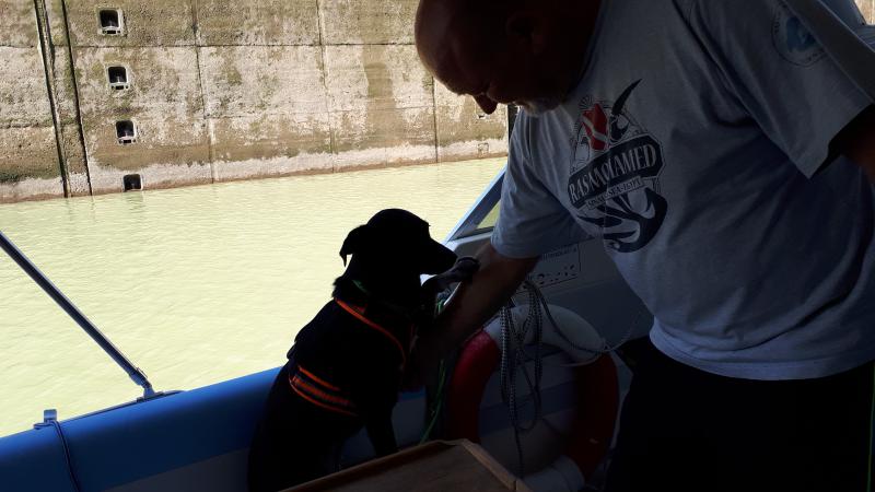 PS: Bei uns sind Leute im Hafen mit einem Bernhardiner und kleinerem Boot.