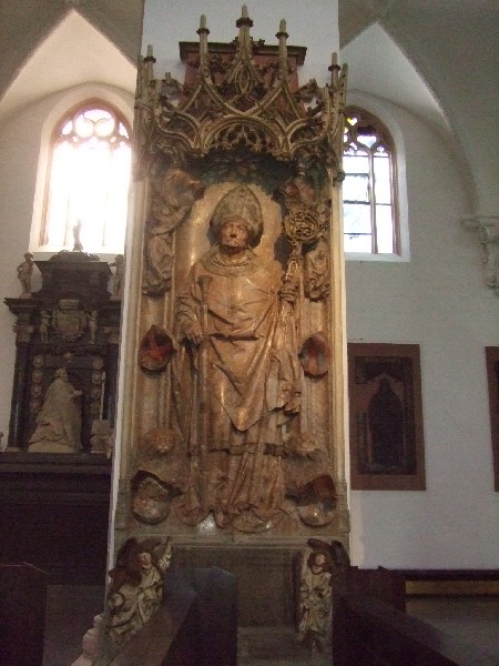 So findet man Romanik, Gotik, Renaissance, Barock, den Einfluß des 2. Vatikanums, Moderne, Postmoderne (ich hoffe, ich habe nichts ausgelassen), alles unter einem Dach. Gleichzeitig ließ man sich vom Ziel der Gestaltung einer "Wegkirche" leiten, d.h. der verstorbene Bischof liegt noch da, wo er mal war, die dazugehörigen Grabplatten (2 von Riemenschneider) wurden chronologisch neu geordnet.