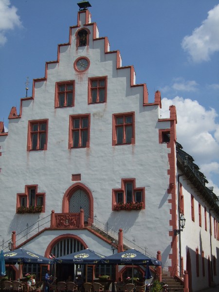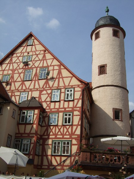 Unterwegs sollte man einen kleinen Stop in Karlstadt einlegen. Ab 12:00, alle 2 Std., steht der Turmbläser oben im Rathaus. Ob der echt ist oder von der Konserve spielt keine Rolle. Romatisch.