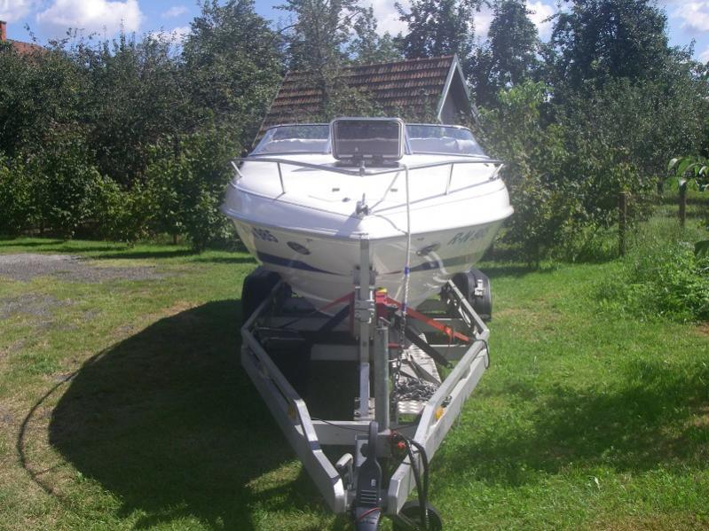 Ich habe mein Boot an der Zugöse nach hinten gespannt. Das hält ganz gut beim Bremsen