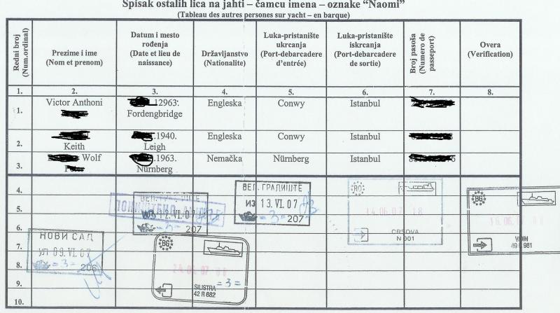 Werde mal suchen ob ich auch meine deutsch/englische wieder finde. Das ist jetzt erstmal eine serbische Crewliste. In meiner Version hatte ich noch die Angaben zum Boot drübergesetzt, so daß die auch schon parat waren. Man beachte das Geburtsjahr des Skippers. ![]() ![]()