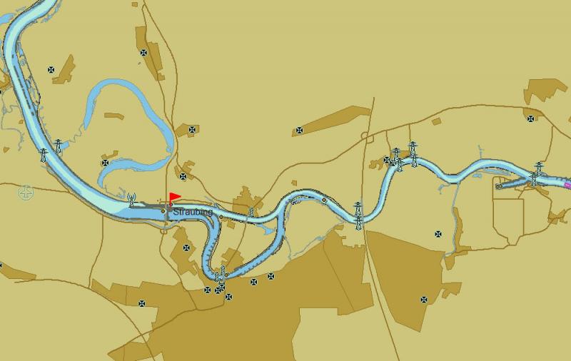 Also nach dem ich das angestossen habe zunächst mal etwas zur Qualität. Dann fällt die Diskussion über die Voraussetzungen = Kosten leichter. Aus Gründen die mit meiner Reise zuammenhängen nehme ich Straubing und zeige die Karten mit verschiedenem Zoom. Was ich jetzt an Land ohne GPS nicht zeigen kann, müsst ihr Euch vorstellen: Euer Boot als Icon, Pfeil oder Punkt mit Fahrtrichtungslinie ( hängt vom Zoom und den Einstellungen ab) genau dort wo Ihr gerade fahrt.