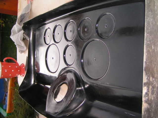 Ich habe mir der Armatur mindestens ein Monat Arbeit verbracht bis sie so war wie wir és uns vorgsetllt hatten, Form und wieder Form und kaputte Form nochmals hergerichtet, dabei lernte ich sehr gut zu spachteln mim Gelcoat