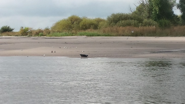 Hier noch ein Bild von der Unterweser am Sandstrand wo sich Möwen und Robben sonnen.
