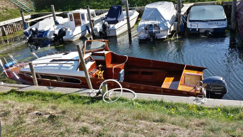 Boot in der Werft bei Schwerin, zufällig war gerade Bootstaufe eines Cabrio Holzboot