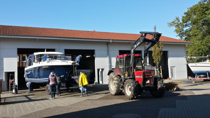 Saisonende heute Boote in die Halle bei uns im Hafen.