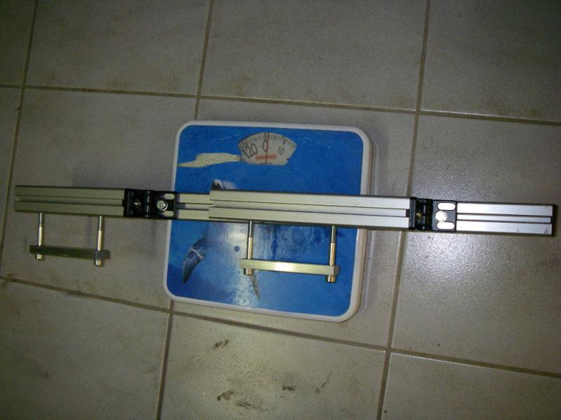 Das Gewicht beträgt 3,5 Kg pro Traverse, alleine oder mit mir gewogen, sind dann 21 kg für alles zusammen.