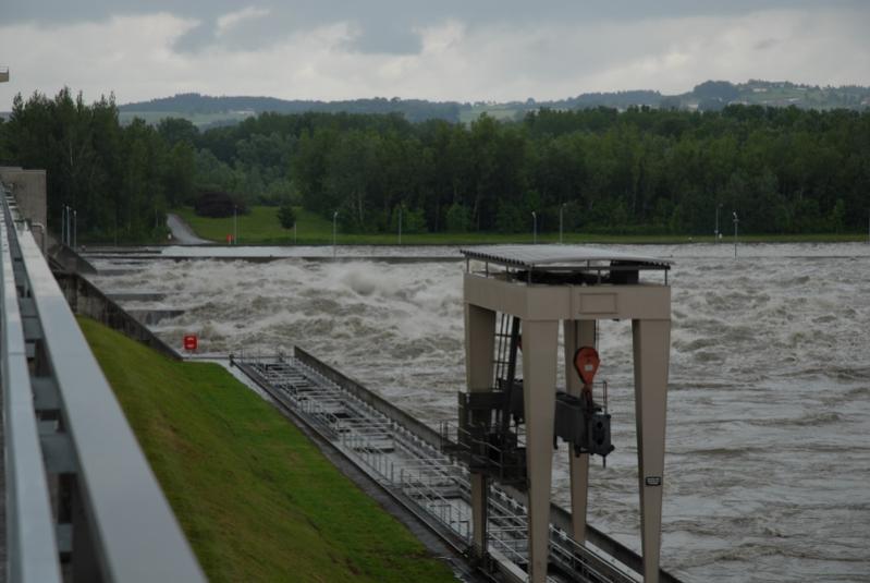 ...... Und so sieht das ganze dann aus : Bild 1) Ca. 2 Km. unterhalb von Kraftwerk Asten-Abwinden. Die Donau überflutet das Augebiet Bild 2) Yachthafen Au/Donau. Die Schwimmstege sind ca. 3-4 Meter Über Normalniveau Bild 3+4) Kraftwerk Asten-Abwinden