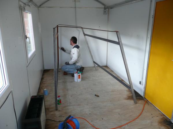 Jetzt bauen wir einen ausgedienten Bauwagen aus mit allen drum und dran. Gestern gings los mit dem Innenausbau.