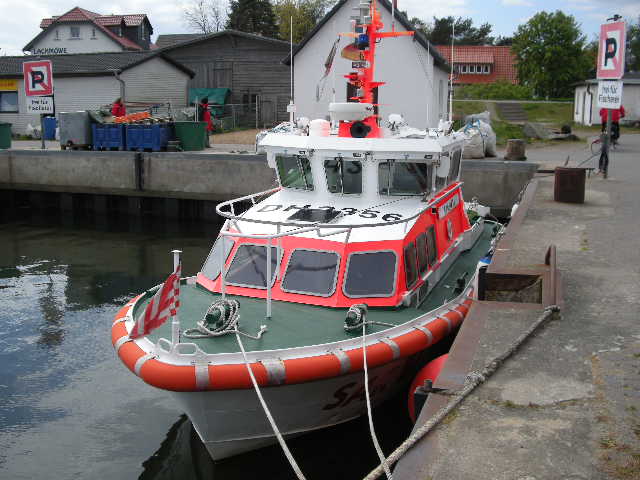 grossen Passagierschiffen - nach Norden in die Hauptstadt der Insel Hiddensee Vitte . Beim Anlegen fiel das Bugstahlruder aus ... Ueberlastung .... bei heftigstem Seitenwind ist das Schiff kaum zu halten . Das Anlegen mit den Heckpfaehlen will auch gelernt sein ! Vielleicht waere der Seenotrettungskreutzer ein Traumschiff ! Unsinkbar ... dreht sich wieder hoch ... mit Ueberrollgurten !!