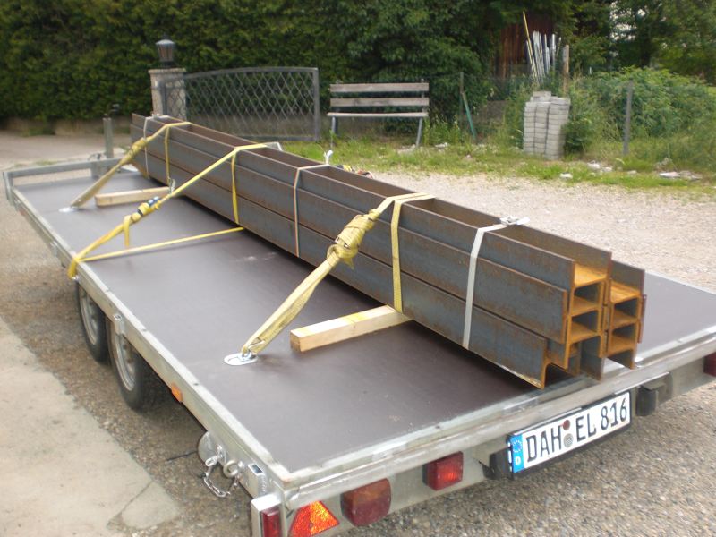 3. Bild....neue Zurrösen eingebaut und die Stahlträger für meine neue Bergehalle geladen
