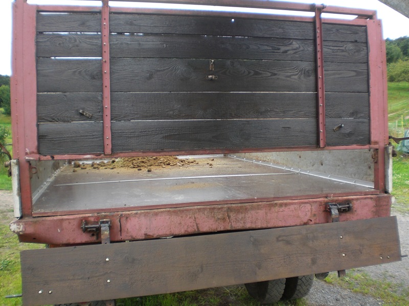 Da passt ein Heuquaderballen von 240x120x80 cm drauf, ca 400kg. Wird dann das Heu zum Füttern in den Stall gefahren.